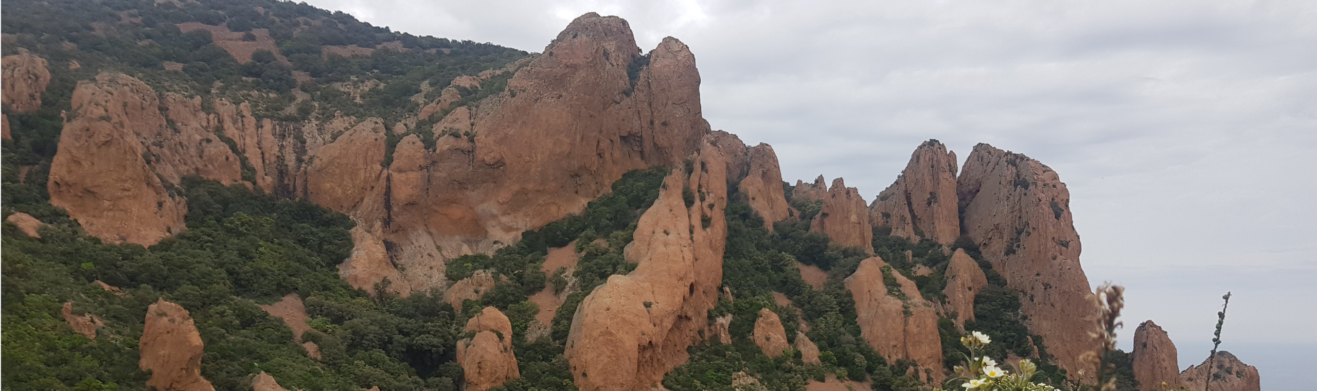 Jour 2 : Pic du cap Roux, un des sommets emblématiques de l’Estérel où la vue s’étend à 360°. Parcours dans le maquis typique, avec toute sa richesse botanique.